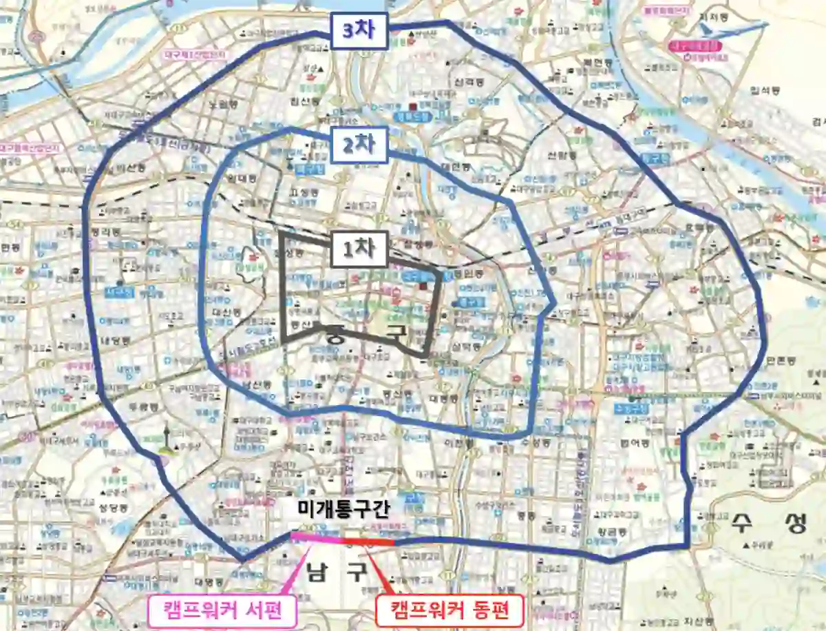 이 중 대구 남구에 위치한 캠프워커 부지는 3차 순환도로 미개통 구간 개발사업이 진행 중이고 여기에 대구도시철도 1호선, 개발예정인 5호선까지 추진된다면 그 파급력은 더 커질 것으로 예상됩니다.