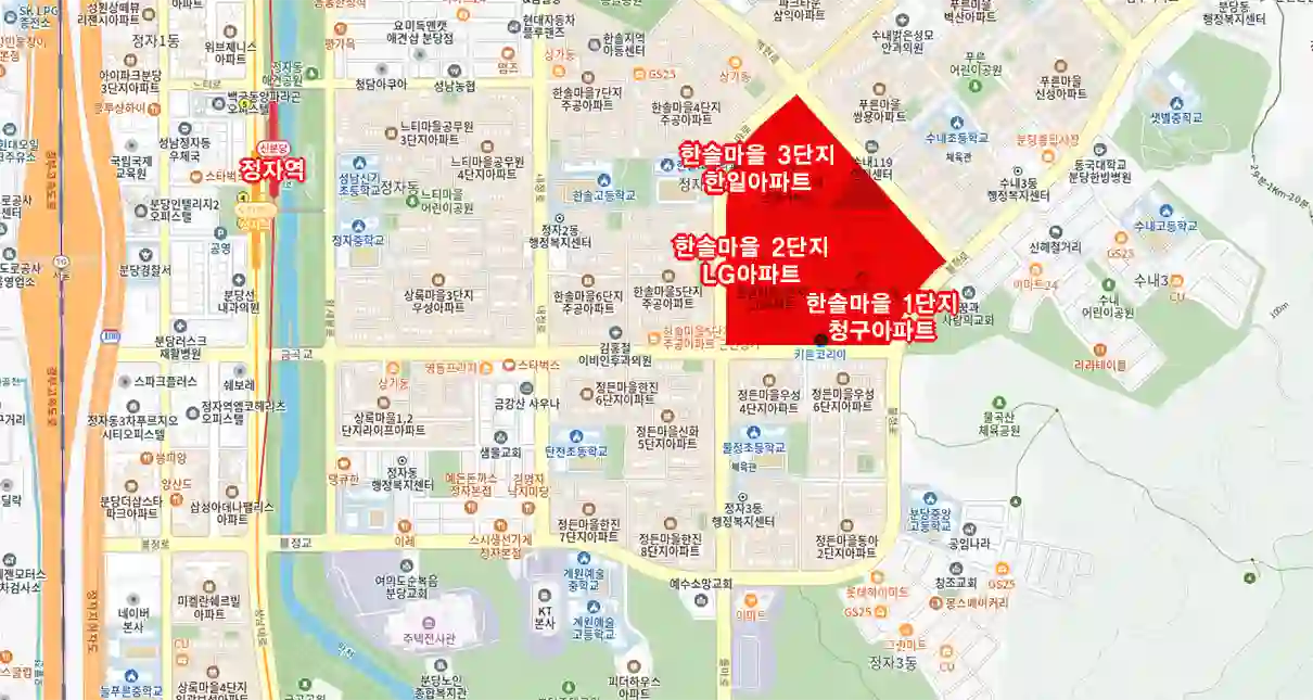 분당 한솔마을 1·2·3단지 입지