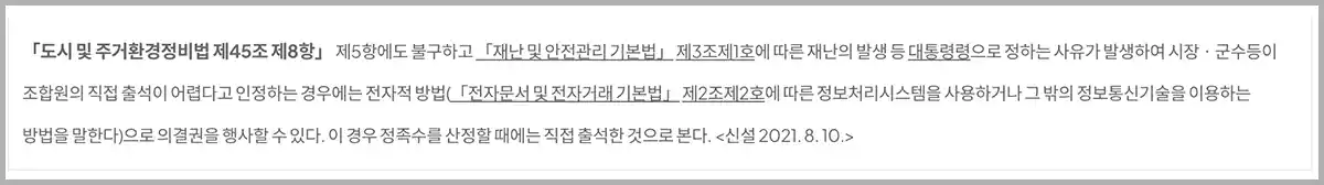 하지만 코로나 19 이후 집합금지가 풀리면서 정비사업 현장에서 전자총회가 이어졌지만 각 지차체별 해석이 달라 혼란이 이어졌습니다.
